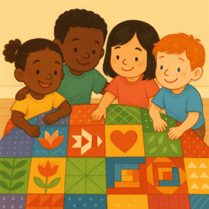 Long ago, during a time when many African American families were not free, people found brave and creative ways to help each other. One way families shared messages of safety and hope was through quilts. Quilts are made of colorful fabric pieces, and in stories and traditions, certain quilt patterns could let people know where to go or when it was safe to travel. In this lesson, students explore quilts as symbols of help, hope, safety, and freedom. Through a read-aloud, map exploration, and a creative art activity, students learn how communities supported one another and how we can show kindness and courage today.